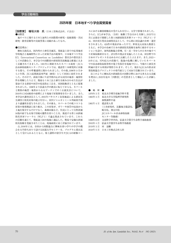 日本地すべり学会 学会賞ページ https://japan.landslide-soc.org/papers.html